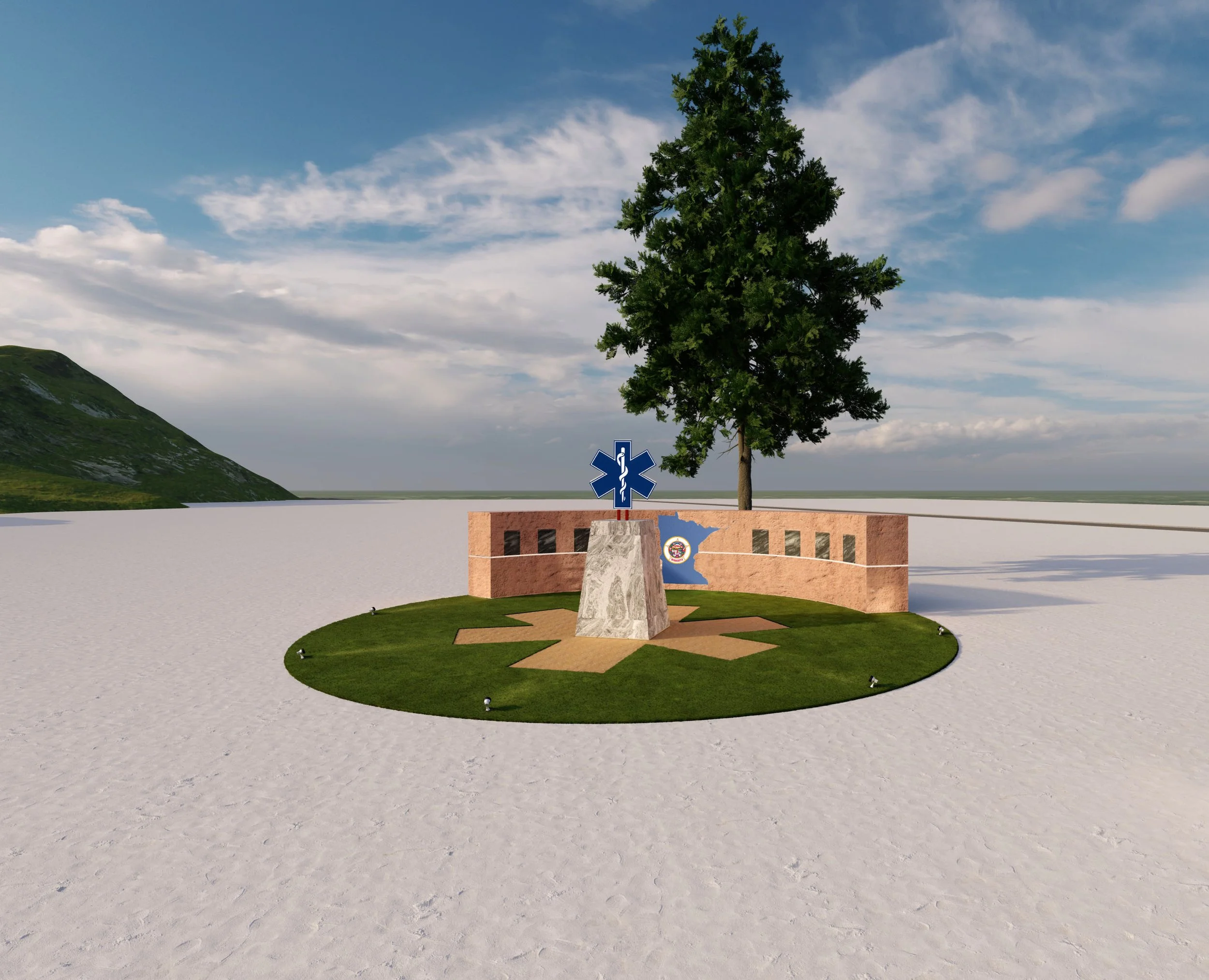 - Incorporating a white line of light or marble to symbolize the medical role of EMS, along with carving the names of EMS providers who sacrificed their lives in central Minnesota Granite, surrounded by a reflective courtyard lined with Limestone.